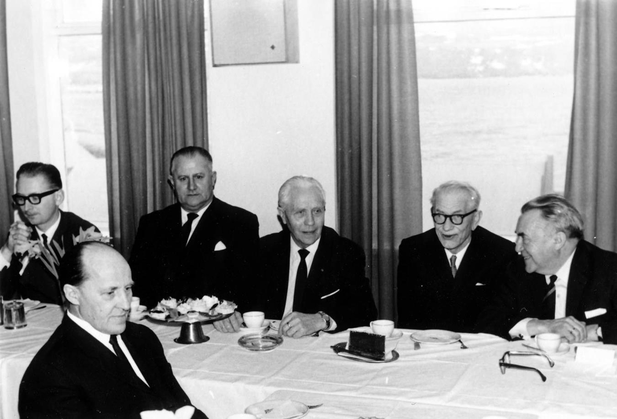 Samsæti KEA til heiðurs Jónasi Kristjánssyni mjólkursamlagsstjórar, með samstarfsfólki og gestum.
