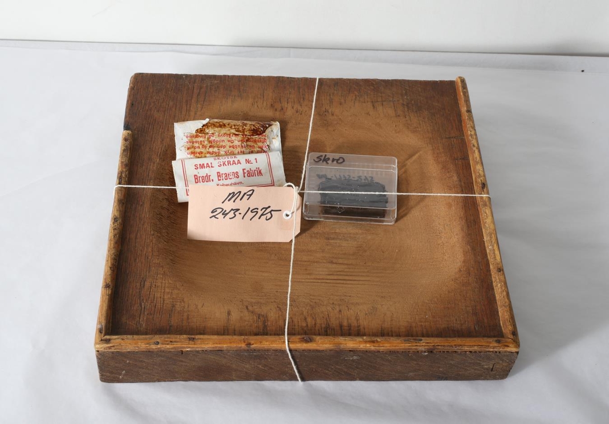 Þykkt bretti eða fjöl notað til að skera tóbak á. Með þessari fjöl fylgir einn poki af Skorsku skroi. Úr búi Gísla Guðmundssonar, stöðvarstjóra Pósts og síma, frá Selnesi á Breiðdalsvík.