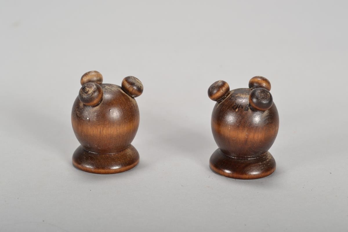 Lítill, dökkbrúnn kertastjaki úr tré, eins og pottur í laginu.