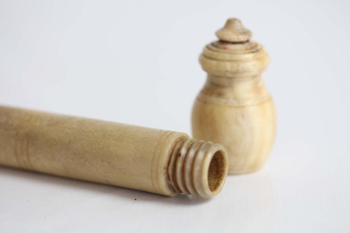 Nálhúsið er rennt með góðum skrúfgangi í loki og á bol. Vel unnið.