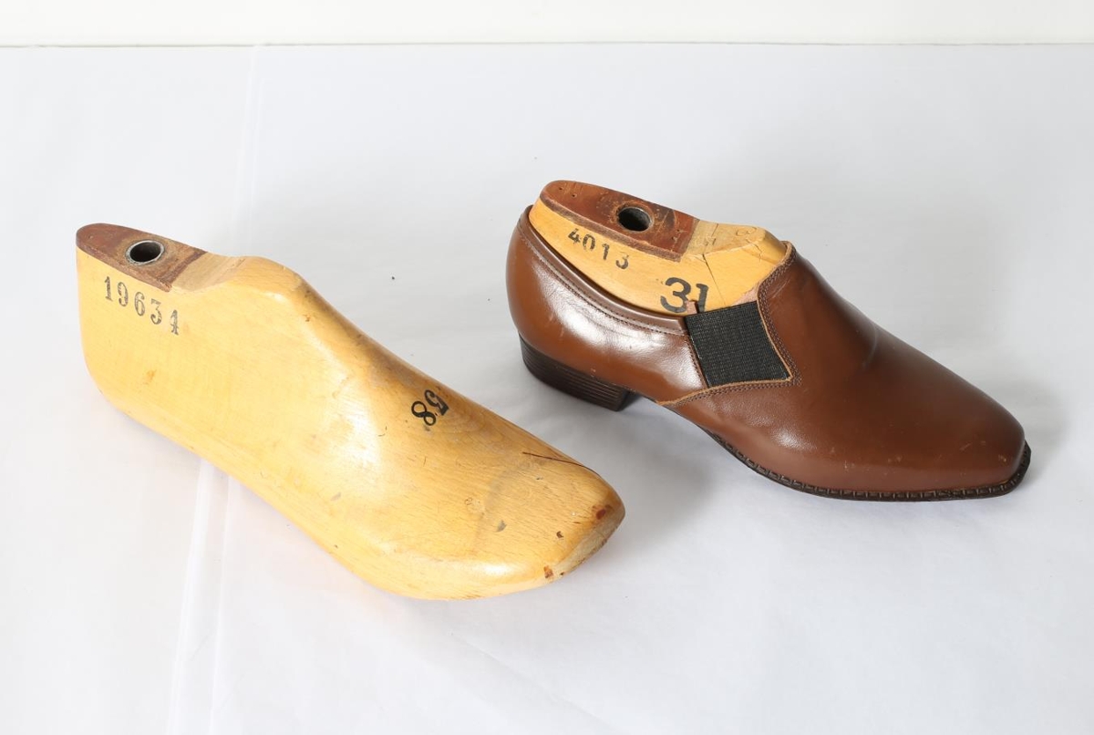 Tvö skómót. a) nr. 31 skór; b) nr. 38. Úr þrotabúi skóverksmiðjunnar Agilu Egilsstöðum er starfaði á árunum 1970-1975. Framleiðandi: Agila.