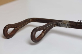 Töngin er farin að riðga mikið og leður sívalingurinn sem er á tönginni er þurr og sprunginn.