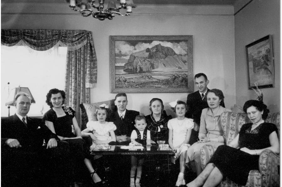 Mynd til hægri: Jól á Blátindi (1951?), Þorsteinn, Anna, Stefanía, Ágúst afi, Sigurður Þórir Jónsson, Sigrún amma, Sigrún Þorsteinsdóttir, Jón Ólafsson, Þórunn og Guðrún uppeldissystir Önnu.
