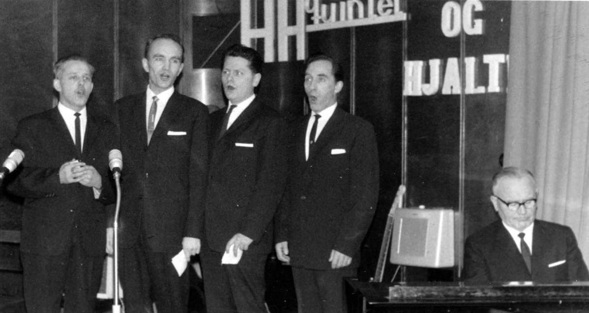 Árshátíð KEA 1965. KEA kvartett Brjánn, Gunnlaugur, Sigurður, Egill og Kristinn leikur undir.