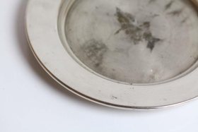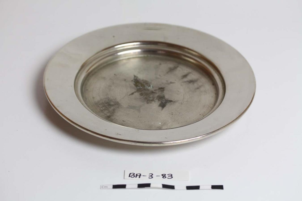 Silfurplett diskur undan kaffökönnu. Örlítið djúpur.