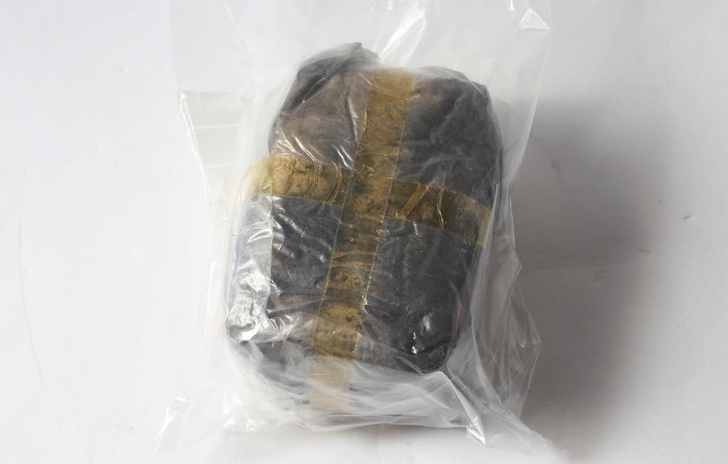 Pakki með 250 gr. af litunarefni fyrir fatnað. Búið að pakka inn í glært plast og líma vel. Var í skáp sem Lárus Eiríksson, smiður á Breiðavaði átti.