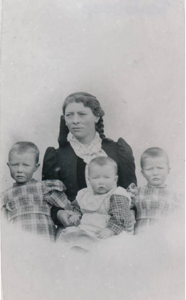 Ragnhildur Steingrímsdóttir á Rauðabergi ásamt börnum.