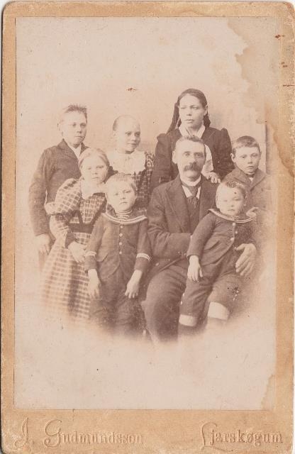 Einar Guðmundsson og Björg Þorvarðardóttir í Blönduhlíð ásamt sex elstu börnunum.