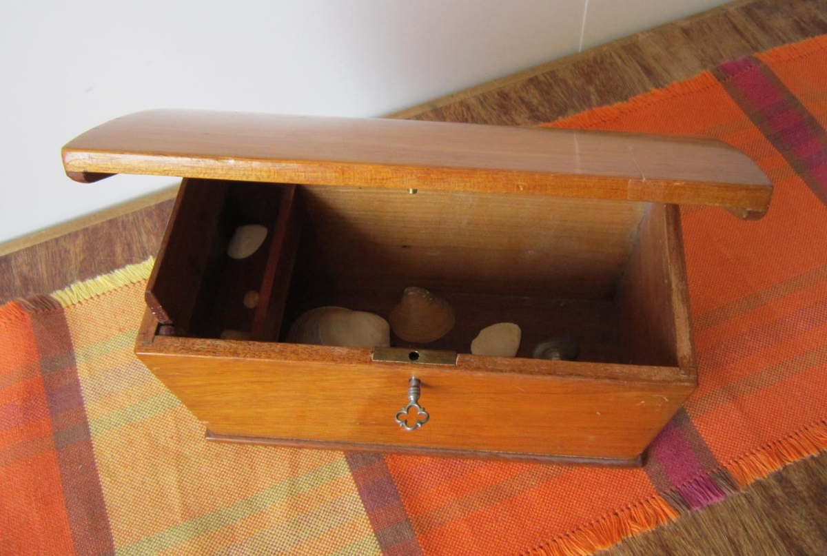 Gefandi er Erla B. Daníelsdóttir 1989. Kistlinum fylgir fallegur lykill sem hægt er að læsa með (snúið rangsælis). Erla fékk hann eftir 1950,hann leit illa út, en hún bað Einar Ingimundarson málara að pússa hann og laga. Eftir það notaði hún hann undir happdrættismiða HÍ í verslun sinni Ísbirninum.