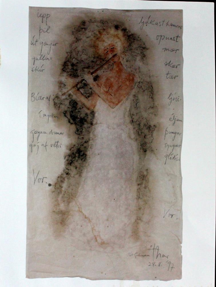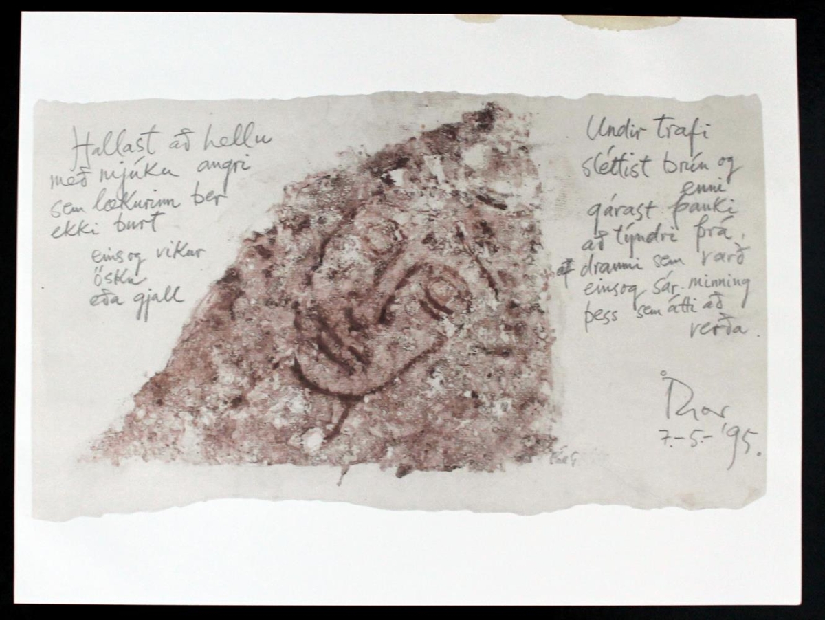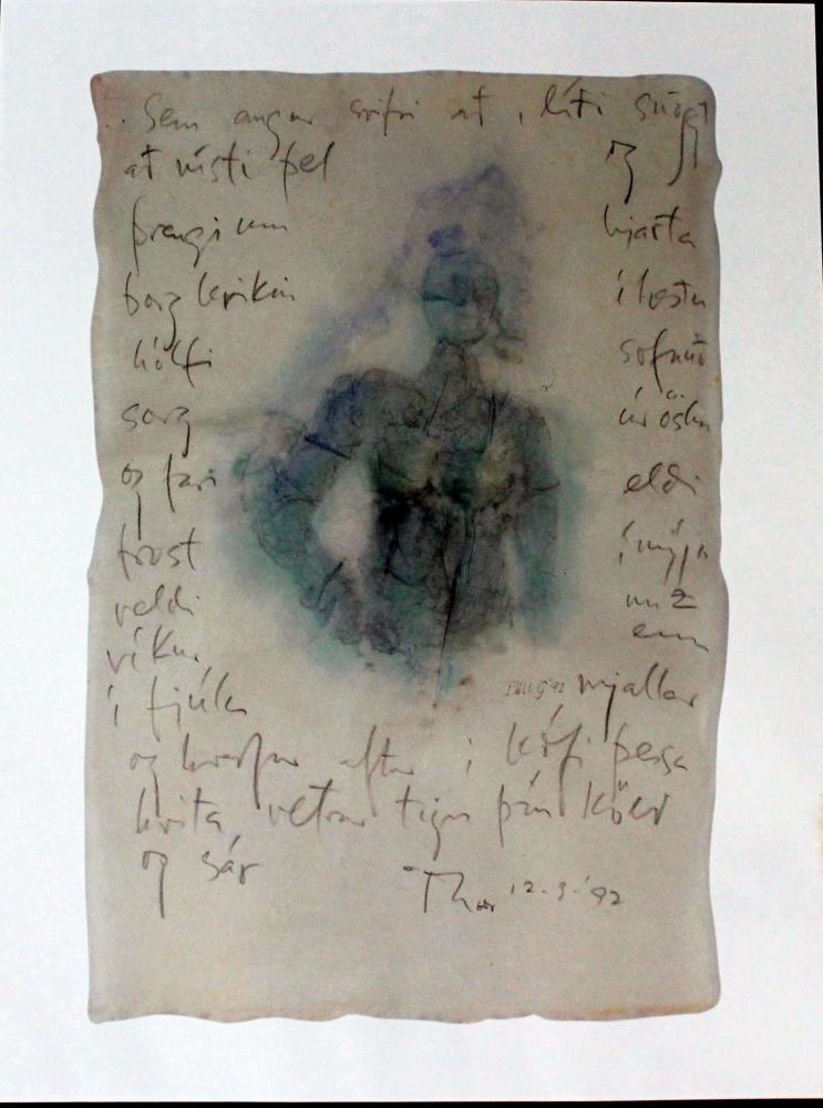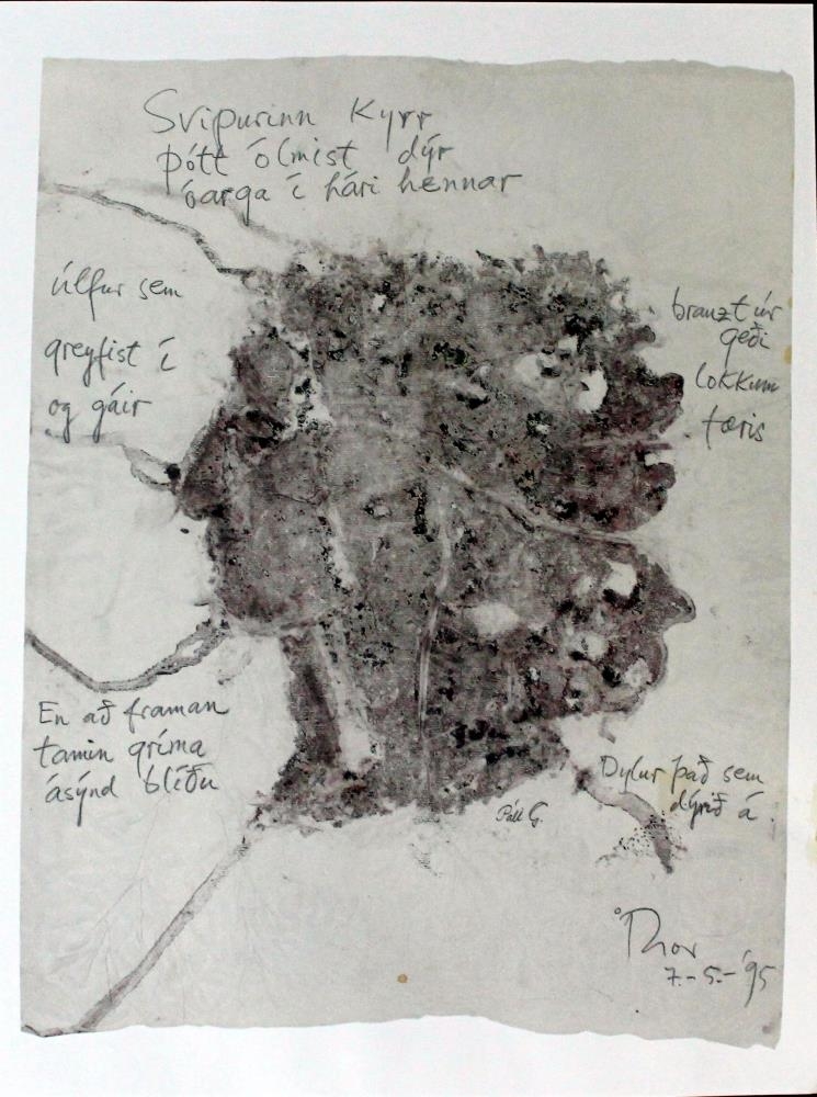 Samvinnuverk Páls Guðmundssonar (f. 1959) og Thor Vilhjámssonar (1925 - 2011). Verkin eru bergþrykkt á japanskan pappír.