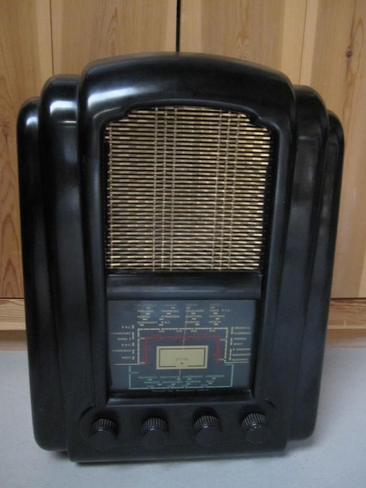 Útvarp af gerðinni Ferranti, svart á lit. Vantar á það bakhliðina.