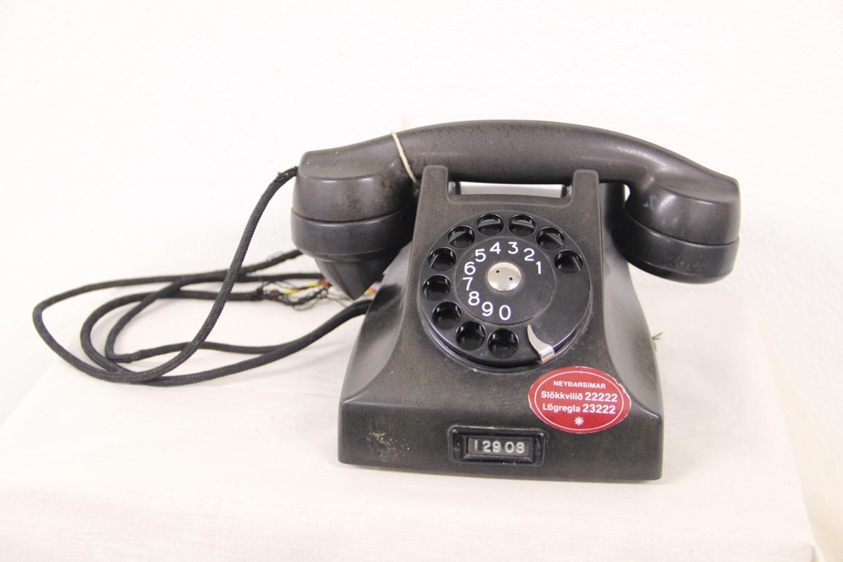 Svartur sími með númerinu 12908. Merktur að neðan DBH 1501.