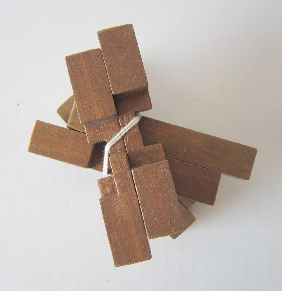 Gestaþraut, þankapinni, frá Ólafi Jónssyni, Kaðalstöðum stendur í aðfangabók frá 24/9, 1971. Gestaþrautin er úr sex 8 cm löngum tré stykkjum, sem raða á saman í einn kubb. Afh. 24/9, 1971