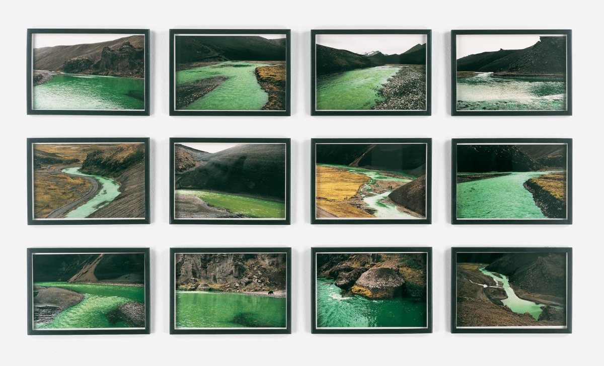 The Green River series is the first work by the Ólafur Elíasson to be acquired by the museum. It is both a work of art and a document of an environmental intervention undertaken by the artist in the years 1998–2001. In 1998, during the Berlin Biennale, Elíasson scattered uranin (a non-toxic powder water-soluble dye, the sodium salt of Fluorescein), into the Spree River, temporarily turning the river a lurid green. Later, similar interventions in Bremen, Germany, 1998; Moss, Norway, 1998; The Northern Fjallabak Route, Iceland, 1998; Los Angeles, 1999; Stockholm, 2000, and Tokyo, 2001, were documented in the series.