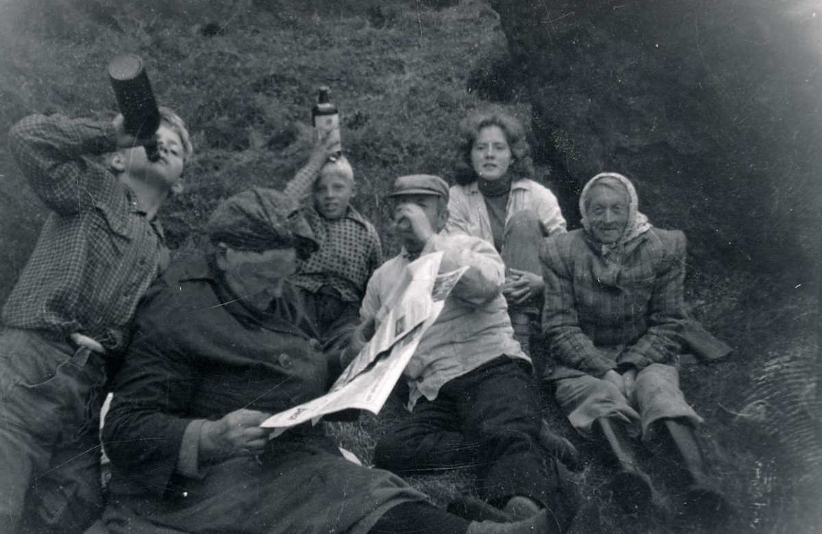 Systurnar Elín og Matthildur Gottsveinsdætur í lautarferð ásamt fleirum.