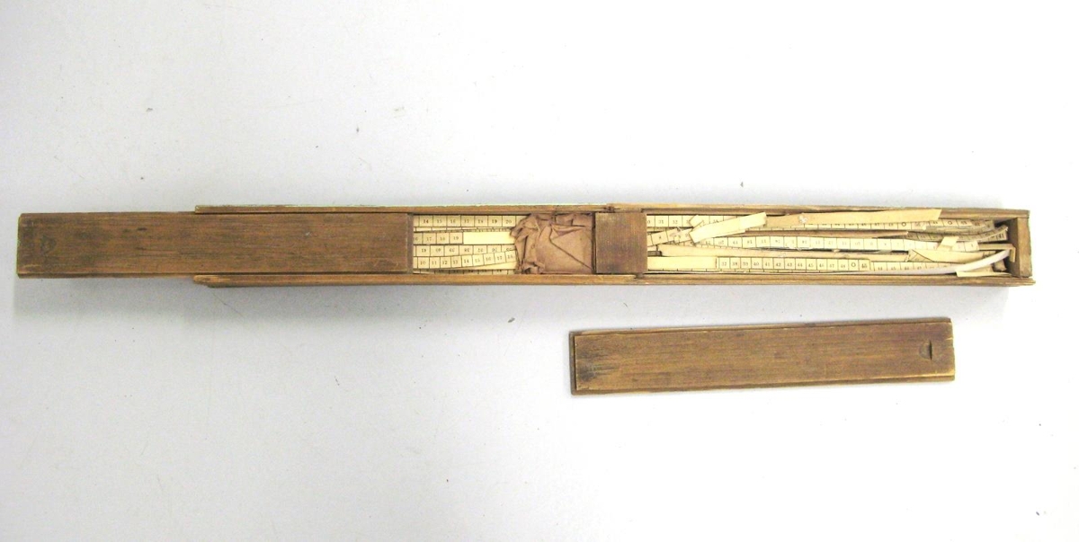 Málstokkur með málum til peysufatasauma. Úr eigu Aðalbjargar Sigurðardóttur í Húsey.