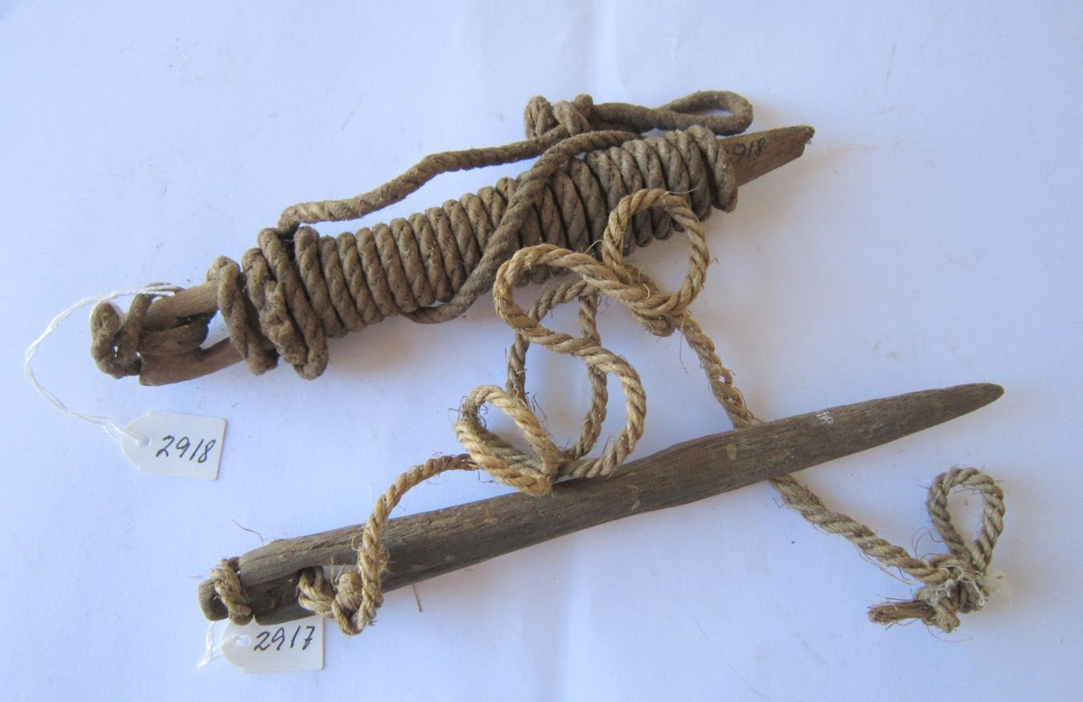 2917 2918 Seilarnál 2 stk.19,5 og 17 cm langar. Notuð til að seila fisk, sem svo var kastað útbyrðis og dreginn með bátnum til að létta bátinn.