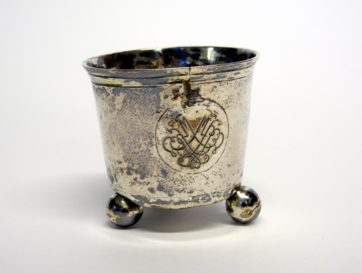Silfurstaup, fremur stórt, á þremur stöppuðum kúlufótum með upprunalegri gyllingu að innanverðu. Að utanverðu er staupið símynstrað og á einum stað er grafinn hringur með spegilfangamarki í: MSS. Ekki er vitað hverjum það fangamark tilheyrði en gefandi telur staupið geta hafa verið í ætt Þorleifs smáskammtalæknis í Barnarhöfn, en hún er sjálf af þeirri ætt komin. Staupið er eftir Sigurð Þorsteinsson, gullsmið í Kaupmannahöfn. Á botni þess eru fjórir stimplar: smiðsstimpillinn STS 1746; Kaupmannahafnarstimpill (þrír turnar) og ártalið 1750; F (silfurvarðastimpill Christopher Fabritius); og stimpill tvíburamerkisins (22.5.-21.6.). Staupið er í fremur góðu ástandi. Þó hefur það rifnað á einum stað við barminn (að framanverðu) og kúlufæturnir hafa þrýstst nokkuð upp í botninn. Við einn fótinn hefur einhvern tíma komið rifa og þar má sjá gamla viðgerð, bæði í botni staupsins og á sjálfum kúlufætinum. Staupið hallar lítillega en þar sem það er hæst er það 6,4 cm hátt og mesta þvermál við barm er 6,6 cm.