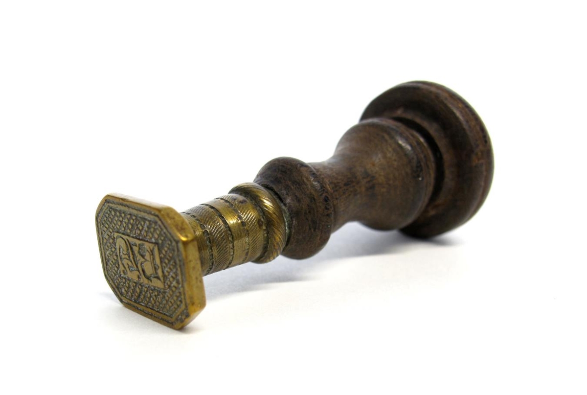 Koparsignet með renndu viðarskafti. Signetið sjálft er áttstrent, símynstrað og með upphafsstöfunum BH, sem eru stafir Benedikts Hannessonar (f. 1830, d. 1897) sem bjó á Haukabrekku og í Bjarnarhöfn. Hann var langafi gefanda. Signetið er 6,4 cm langt, mælt með skafti. Þvermál sjálfs signetsins (stéttarinnar) er 2,1 x 1,6 cm, en þvermál hnúðsins á skaftinu er 2,6 cm. Það er í góðu ástandi en þó má sjá að það hefur töluvert verið notað. Því má ætla að það sé frá því um 1850-1870.