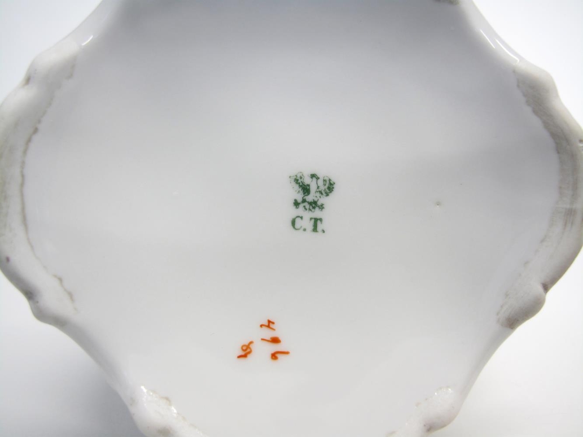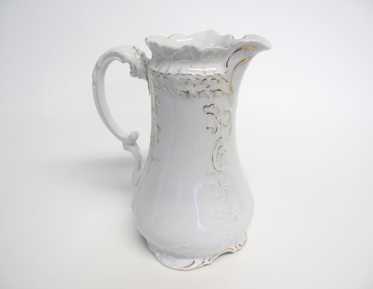 Súkkulaðikanna úr hvítum leir eða postulíni og skreytt með gyllingu. Lok vantar. Á botni er grænn stimpill: flattur örn og C.T. sem stendur fyrir Carl Tielsch Co. Kannan er þýsk og mun vera frá því um 1875-1900 (á þeim árum mun þessi stimpill hafa verið notaður). Kannan er hæst 22,5 cm. Kannan er úr eigu Guðrúnar Benediktsdóttur ljósmóður (f. 1870, d. 1946), ömmusystur gefanda. Hún bjó um tíma í Winnipeg en flutti aftur til Íslands eftir andlát eiginmanns síns þar ytra.