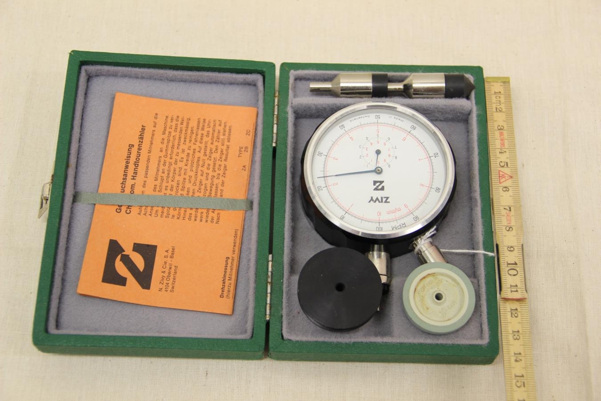Hluturinn er mælir ætlaður til þess að mæla snúningshraða á öxlum véla og var notaður í Ullarverksmiðjunni Gefjun á Akureyri.