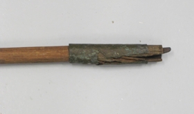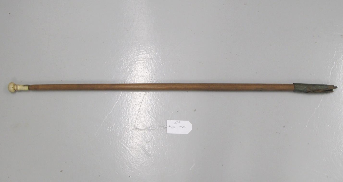 Með renndum hnúð úr hreindýrshorni á öðrum enda, á hinum járngaddur og utan um hömruð koparhlíf, rifin. Gefandi hafði lengi vitað af stafnum og haldið til haga. Einhvern tíman höfðu börn náð í hann og farið með út. Gefandi fann stafinn frosinn fastan í polli úti á túni og pjakkaði hann upp og geymdi síðan. Sölvi, sá er gerði hlutinn, var ömmubróðir gefanda.