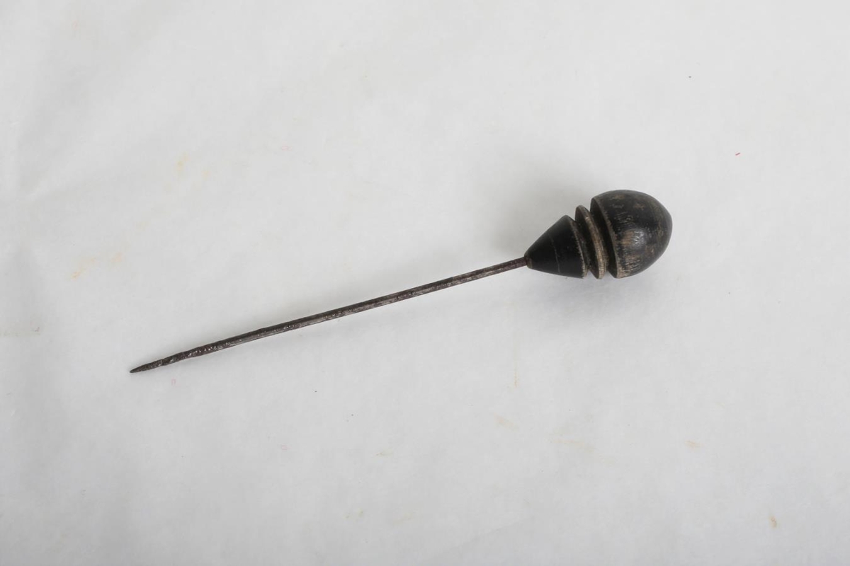 9,2 cm langur sjalprjónn m/ svörtum renndum hnúð á endanum. Tvær skrautrendur renndar á hnúðinn. Prjóninn var í kassa sem tengdamóðir Sigríðar Jónsdóttir átti. Halldóra Sigurðardóttir var tengdamóðir hennar og bjó á Hallfreðarstöðum í Hróarstungu.