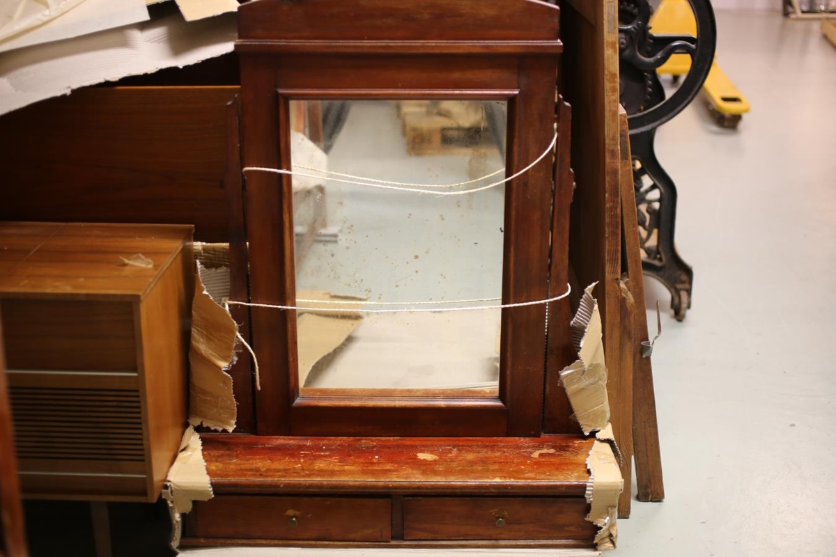 Þetta er efsti partur af borði sem nú er glatað. Tvær skúffur og á endanum rís spegillinn sem snýst á ás. Hæð spegilsins er 82 cm frá skúffuborðinu, borðið er 76 cm breitt. Spegillinn í rammanum er 55 xc 36 cm. Þessi hlutur er úr hjónaherbergi séra Sigurjóns Jónssonar og Önnu Sveinsdóttur sem sátu Kirkjubæ frá 1920 -1944.