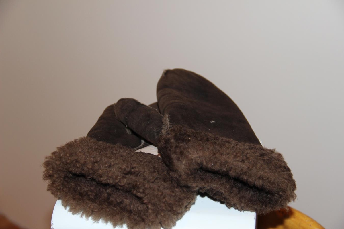 Lúffurnar eru dökkbrúnar úr mokkaskinni frá Skinnaverksmiðjunni Iðunni á Akureyri.