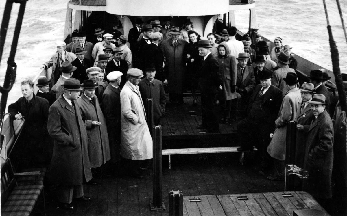 Um borð í m/s Snæfelli EA 740 í reynsluferð 1943. Smíðað í Skipasmíðastöð KEA.