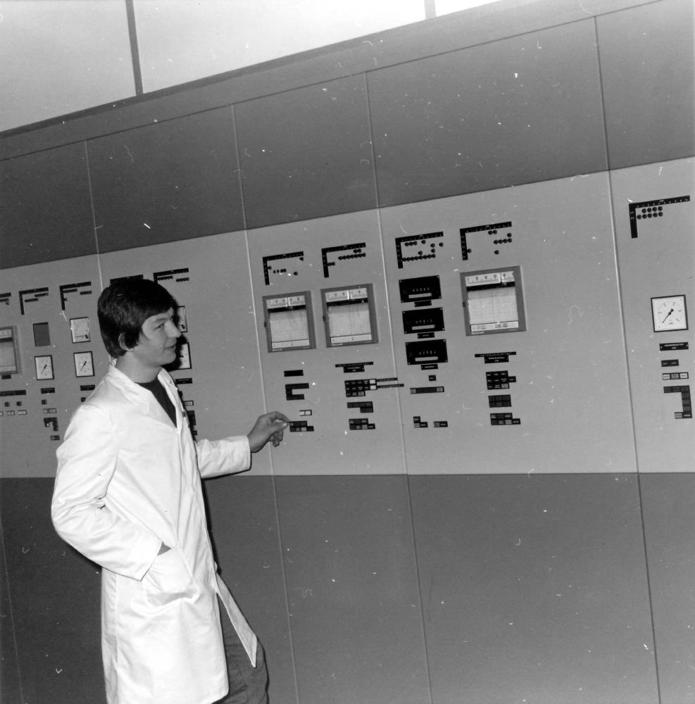 Þórarinn fylgist með tækjabúnaði og vinnslu.