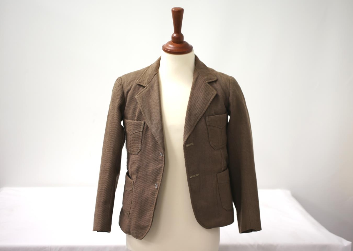 Brúnn drengjajakki, heimasaumaður, trosnaður á saumum, vantar tölur. Jakki af Gunnsteini Stefánssyni frá Ekru (f. 1930). Móðir hans, Sigurborg, saumaði á hann jakkann þegar hann var 9 ára. Hlífðar- og skrautflík.