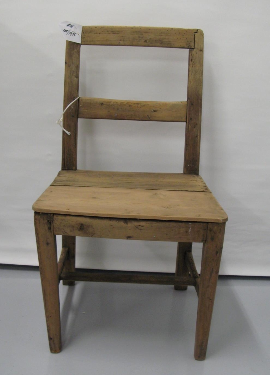 Lítill og nettur stóll með baki sem er rammi með þverspýtu. Setan er úr tveimur breiðum fjölum. Þversláin á milli fóta er brotin en hefur verið gert við hana með koparstykki. Smiðurinn, Jón Þórarinsson, var faðir Ríkharðs Jónssonar, myndhöggvara.