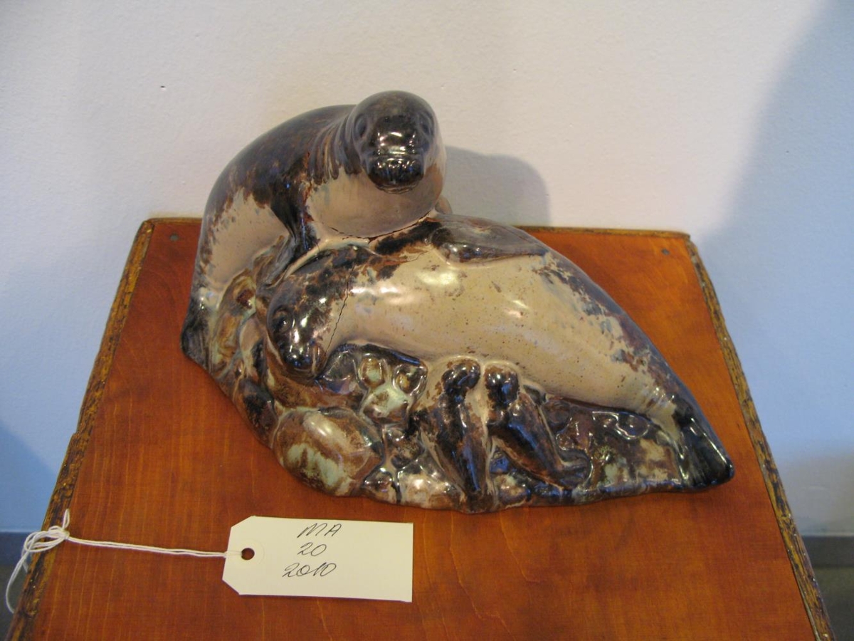 Tveir selir sem liggja á skeri og tveir kópar sjúga urtuna. Styttan er eftir Guðmund Einarsson frá Miðdal. Var í búi Gunnar Magnúsdóttur Gilsbakkavegi 1, Seyðisfirði.