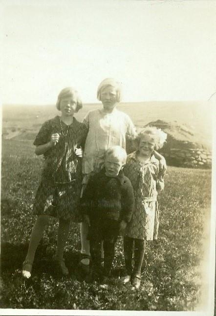 Börn á Eiríksstöðum í Jökuldal. Í texta er sagt að þetta séu börn Jóns G. Snædal. Elsta barnið er líklega Steinunn Vilhjálmsdóttir Snædal fædd 1916 (bróðurdóttir Jóns G. Snædal). Yngri börnin eru væntanlega Steinunn Guðlaug Jónsdóttir Snædal fædd 1921 og Gunnlaugur Einar Jónsson Snædal fæddur 1924. Stúlkan lengst til vinstri en óþekkt.