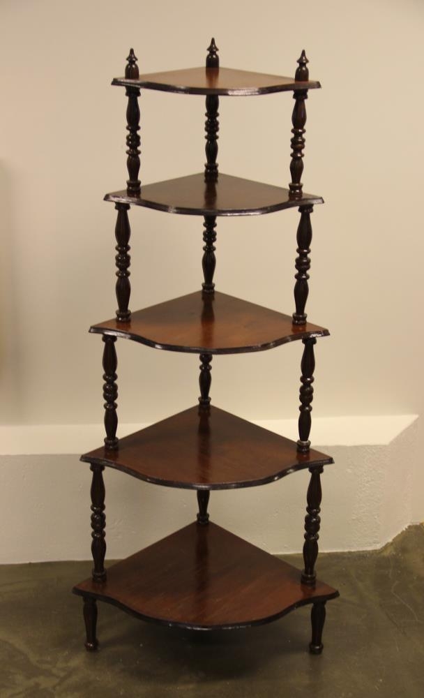 Hornhilla með renndum fótum, rauðbrún að lit. Hillurnar eru fimm.