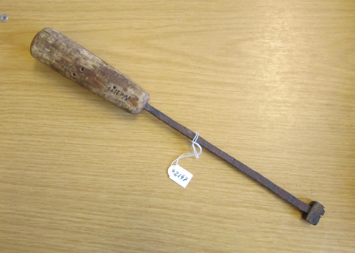 Brennimark með stöfunum G.J, lengd 32 cm, úr eigu Jóns Guðmundssonar (f.1/10, 1867 – d. 17/10, 1945), Fróðhúsum, Borgarhreppi.