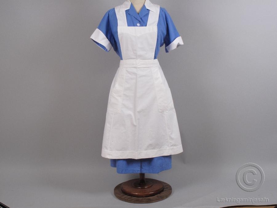Stærðir skráðar í Sarp 2: "40-42". Á gömlum myndum af hjúkrunarfólki á Vífilstöðum voru þessar svuntur í notkun.
