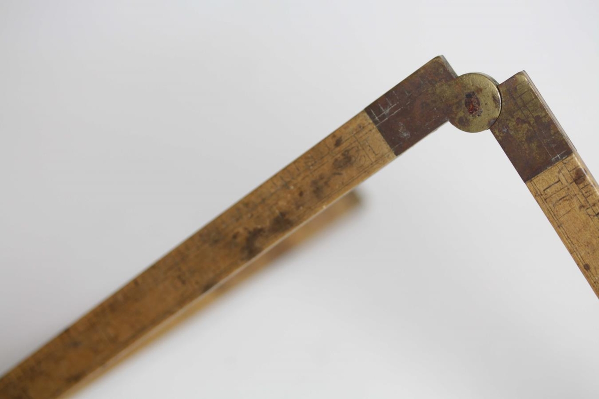 Reglustika með tommumáli. Notað við að mæla og rista leður og skinn.