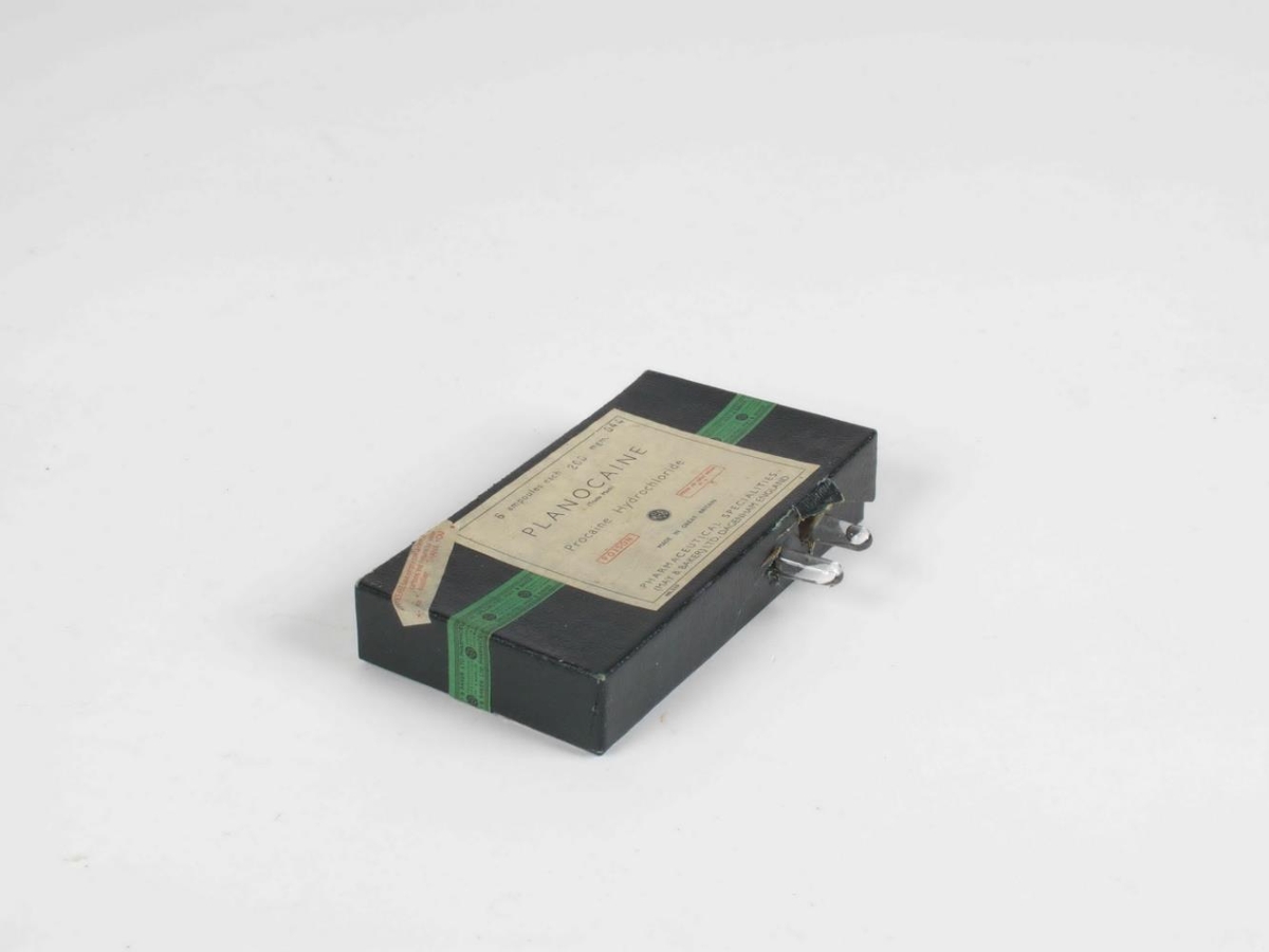 Það eru tvær stærðir í kassanum. 2 stærri ampúlur, lengd 8,5 cm, og þrjár minni, lengd 6,5 cm. Kassinn er svartur og í hann vantar eina ampúlu.
