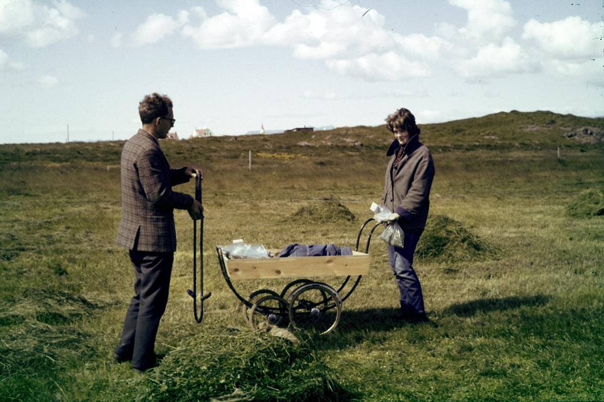“Skrifstofuvagninn”, með bókhaldinu til að skrá niðurstöður og á vagninum voru einnig flutt sýni sem tekin höfðu verið. Þorsteinn Þorsteinsson og Þjóðbjörg Þórðardóttir.