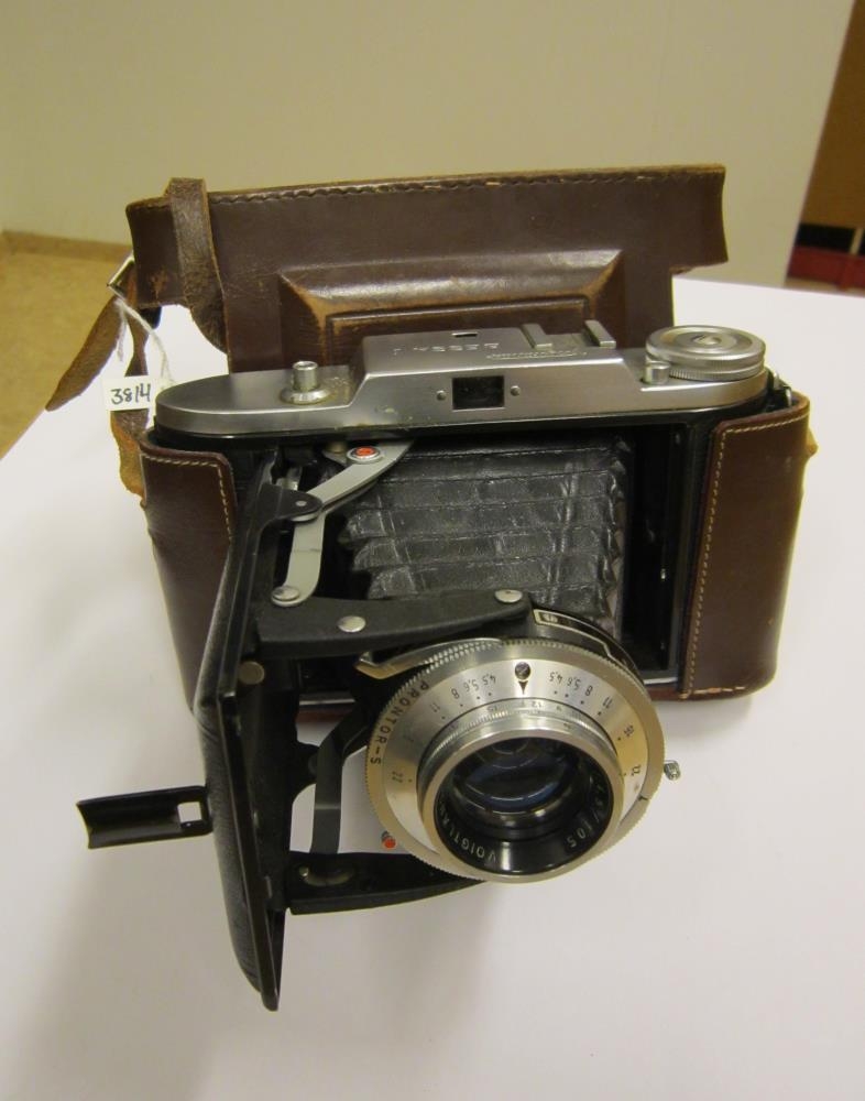 Myndavél Gerð: “Yoigllánder Bessa I” með PRONTOR S linsu, í brúnu leðurhulstri.