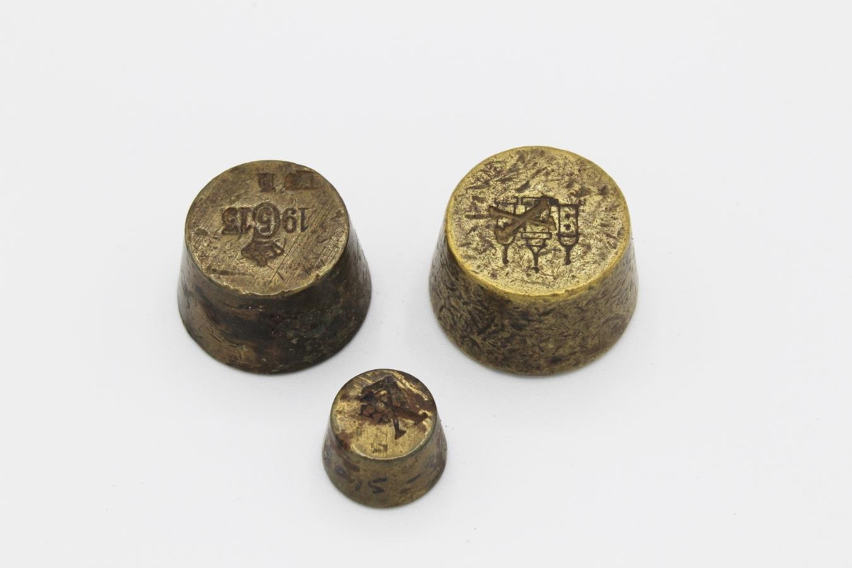 Lóð, 3 stk. það stærsta er 25 gr., næststærsta 20 gr. og það minnsta 5 gr. Úr fórum Jóhannesar Kristjánssonar. Annar uppruni óþekktur.
