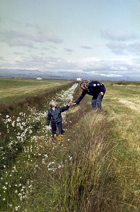 Uppgróinn skurður á milli Hulduvalla og Boggubala. Sigríður Héðinsdóttir og Ásdís Geirdal.