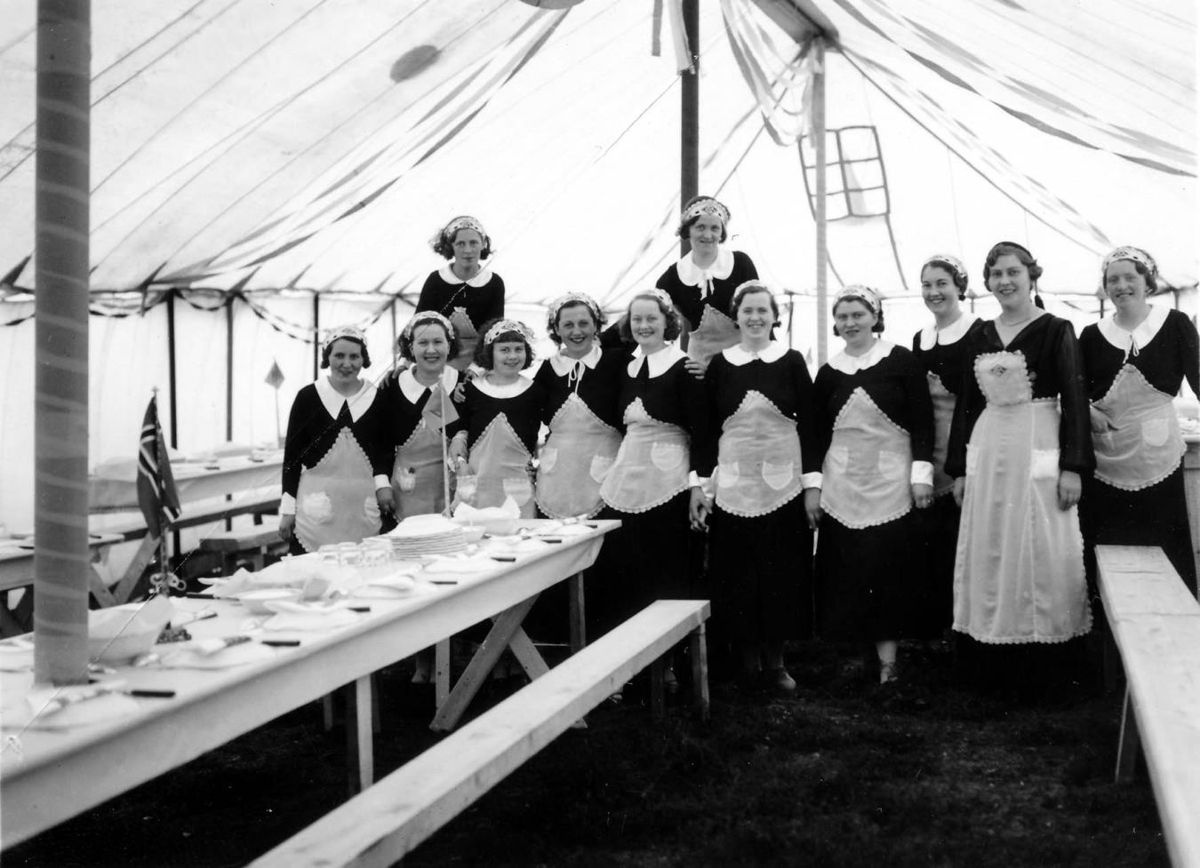 Dömurnar sem sáu um framreiðslu á veitingum á 50 ára afmæli KEA á Hrafnagili.