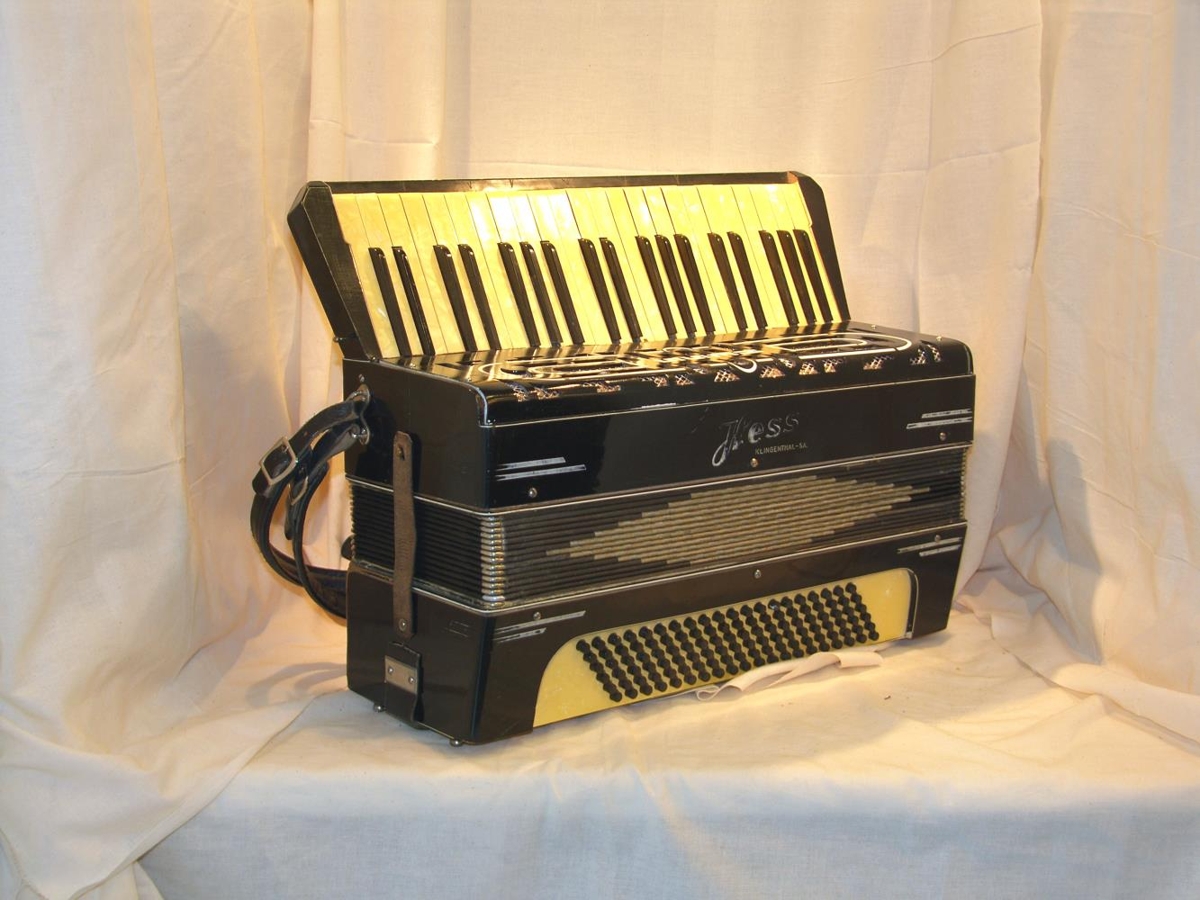 Svört píanóharmonika af gerðinni HESS, 41 nóta í diskant og 120 í bassa, 3 kóra og 1 skipting. Framleidd í Þýskalandi. Mikið endursmíðuð, m.a. grillið. Fyrst er vitað um harmonikuna árið 1955 er Bragi Hallgrímsson bóndi í Holti í Fellahreppi eignast hana notaða, en árið 1980 kaupir gefandinn hana, og spilaði á hana fyrstu árin sem hann átti hana.