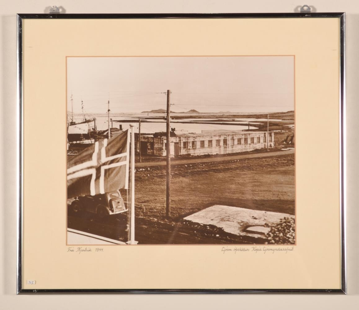 Innrömmuð svart-hvít ljósmynd „Frá Njarðvík 1944“ Ljósmyndari óþekktur. Kópía frá Ljósmyndasafni Reykjavíkur. Myndin er í stálramma