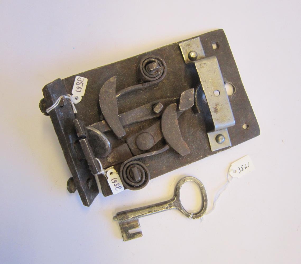 Skrá ásamt lykli, stærð ~ 15 x 10,5 cm. Lengd lykils 9 cm.