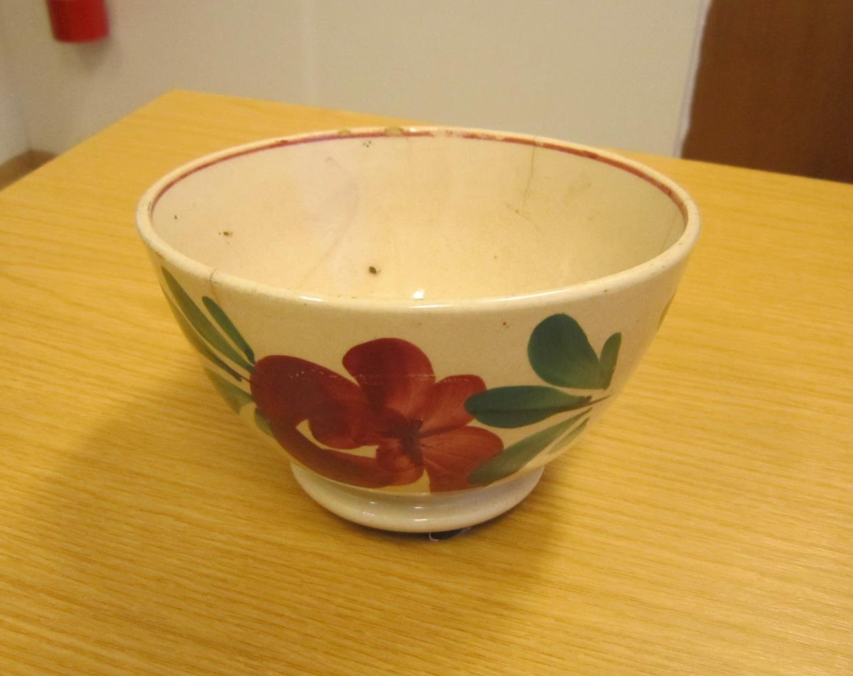 Skál ljós með ámáluðum blómum, 15 cm í þvermál, efst.