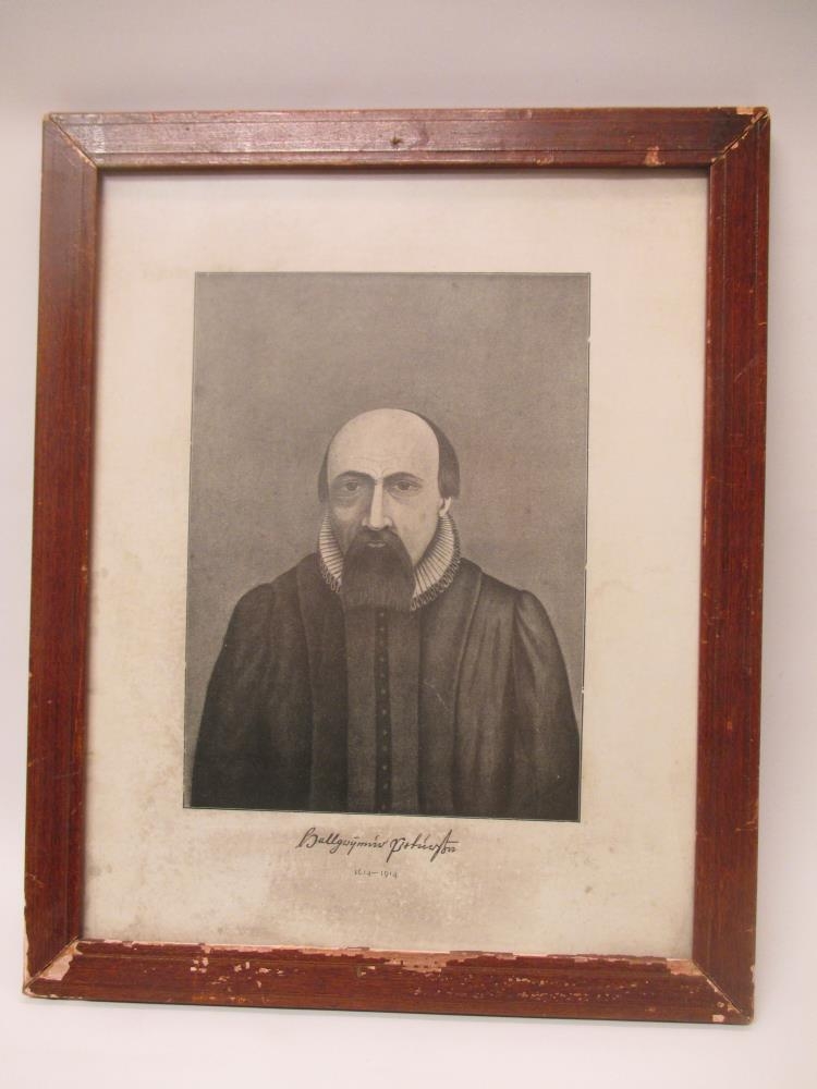 Innrömmuð mynd af sr. Hallgrími Péturssyni sálmaskáldi. Frá Þorvaldseyri á Eyrarbakka.